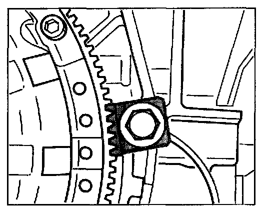 10. Remove the torque-converter drive plate. Fit special tool toothed segment No. 9538/1 for countering using an M12 x 50 screw. Unscrew 8 M10 x 25 x 1 Torx socket screws and remove drive plate.