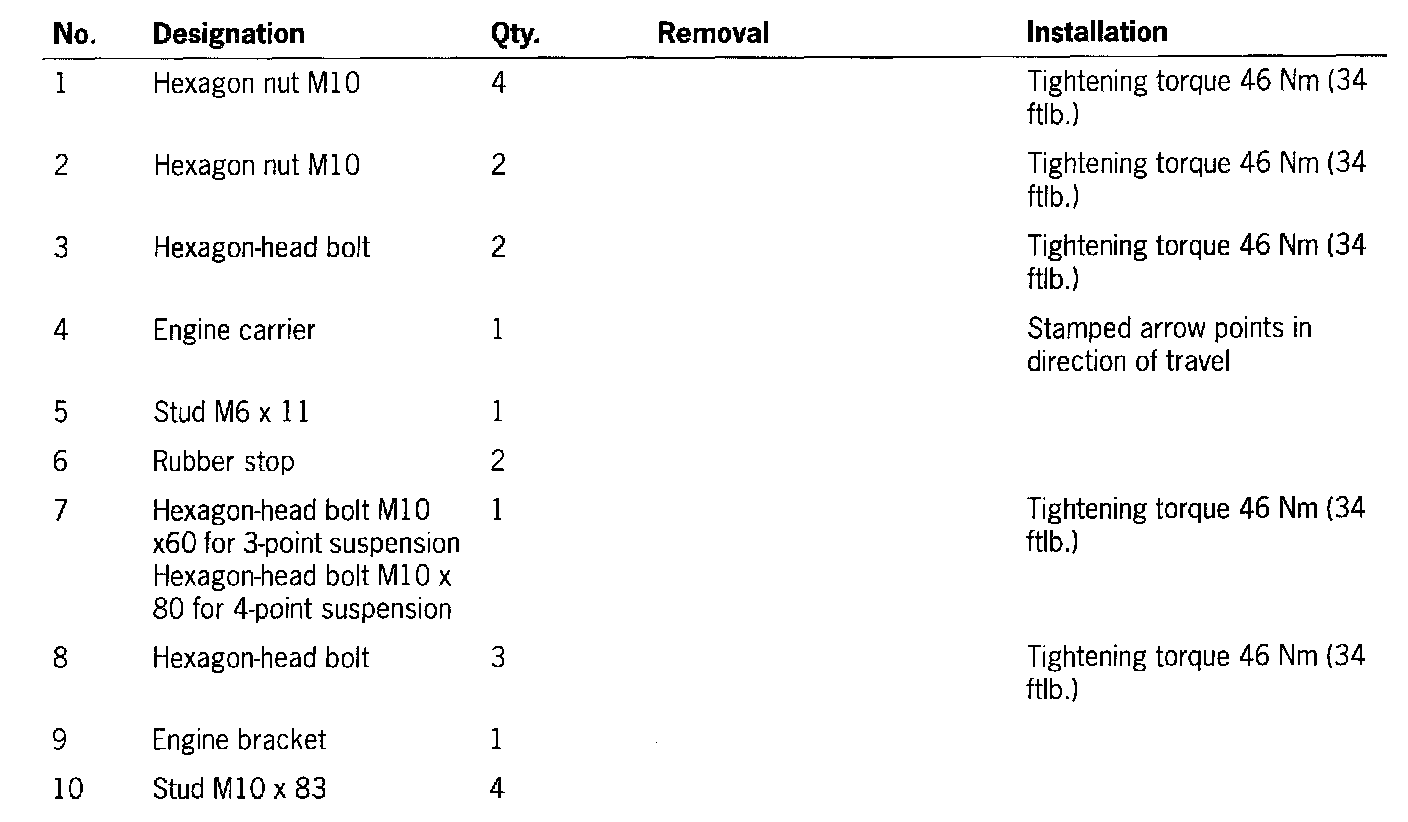 - There are two model versions of engine brackets. Allocation occurs according to the number of screw connection points