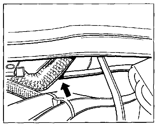 - Check the fuel hose for correct routing. The fuel hose is routed behind the engine wiring harness.