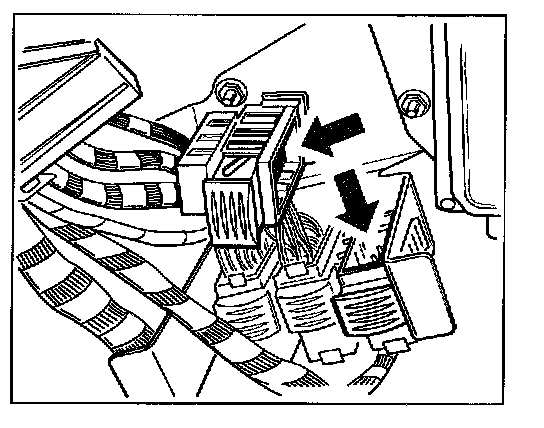 9. Re-connect engine control module. To do so, start at the bottom. Pay attention to the plug designations on the control module.