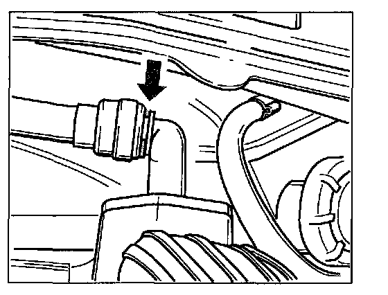 16. Push the vacuum line for the brake booster in a straight line on to the flange, until the plug is heard to engage. Then install the grey snap ring again. Check that the line is seated properly by pulling on it gently.