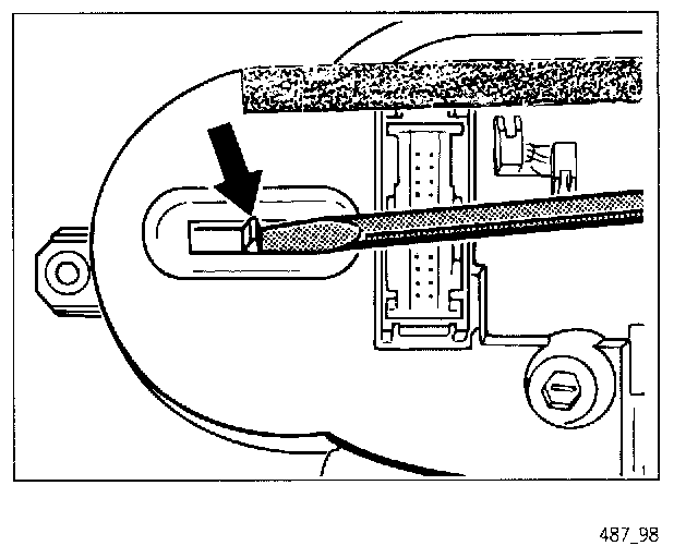 4. Press both green guide tabs inwards over the contact plugs with a screwdriver (do not tilt).