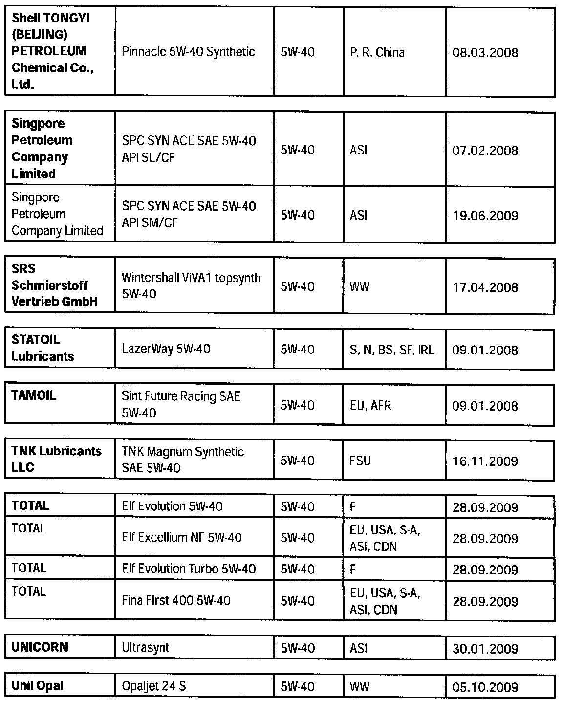 Overview of engine oils approved by Porsche, "Porsche approval list".