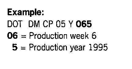 The age of the tire can be determined via the manufacturer's code, which is listed behind the DOT code on the tire sidewall. The date of manufacture (the last three digits) is located at the end of the code.