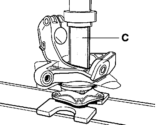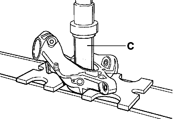To do this, place the wheel hub on the wheel centering device and press it on the wheel bearing inner race using pressure piece VW 415 A (tool C).