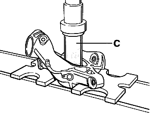 To do this, place the wheel hub on the wheel centering device and press it on the wheel bearing inner race using pressure piece VW 415 A (tool C).