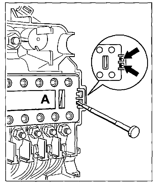 2. Carefully lever off the cover -A-, e.g. with a screwdriver -arrow-. This will break the locking tabs and the cover can be removed.