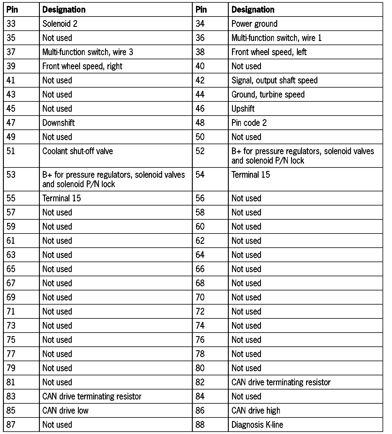 Pinout Values and Diagnostic Parameters