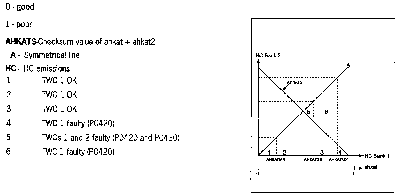 For the sum of the emissions, there is the AHKATSB threshold value. A digit (ahkat) which is either 0 or 1 is used as a measurement for the aging of the catalytic converters.