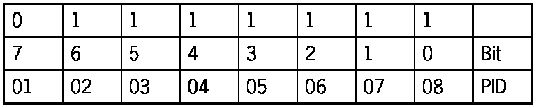 NOTE: The Data A and B bytes indicate that PIDs 02, 03, 04, 05, 06, 07, 08, 09, 0B, 0C and 0D are supported.