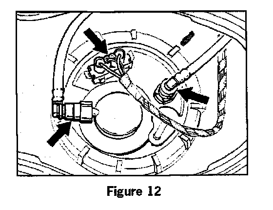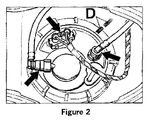 9. Release the electric lead for the fuel pump from the tabs (Figure 5, Item F).