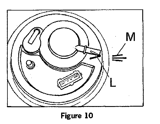 13.4 Completely insert the fuel sensor and align so that the arrow mark (Figure 10, Item L) on the fuel sensor matches exactly with the first line marking clockwise (Figure 10, Item M) on the fuel tank. This will also increase the distance between float and fuel lines.