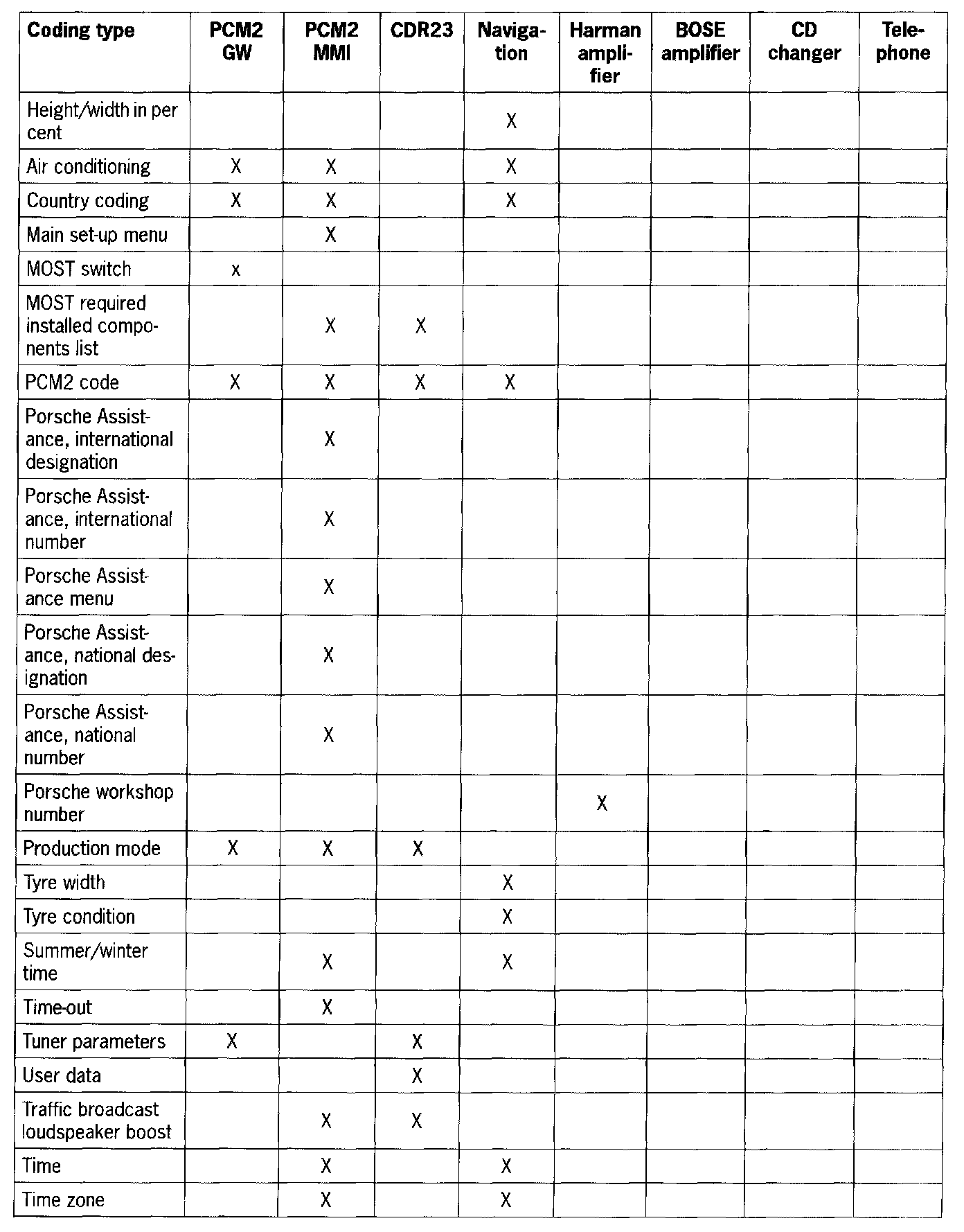 - In the Boxster (986) CDR23 tuner parameters menu the current country code is displayed