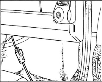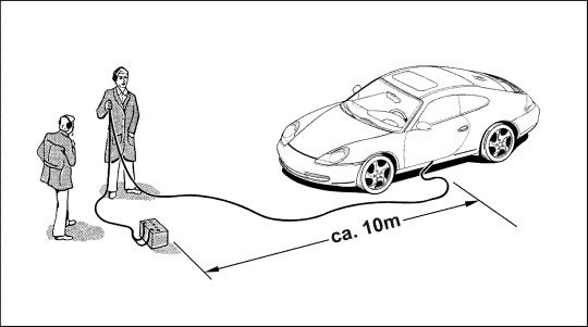 Connect the ignition device 9257 with the adapter cable 9566 to the passenger's airbag plug connection. Place the ignition device in front of the vehicle through the door gap.