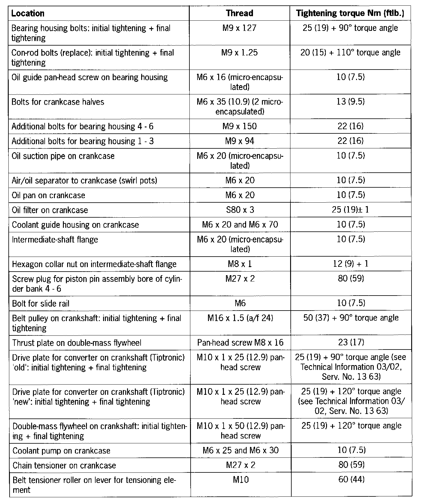 Tightening Torques For Engine M96/23 (2.7 l), M96/24 (3.2 l)