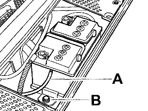 ^ Check that the battery is seated correctly after installation. Other dangers exist with a loose battery such as: - Reduced service life due to vibration damage. - Damage to the grid plates of the battery. - Damage to the battery housing through the retaining bracket (possible acid leak, high subsequent costs). - Inadequate crash safety.