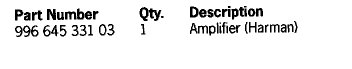 Remove amplifier (Harman), Part No. 996 645 331 02, according to Boxster Technical Manual, Group 9, Chapter 99 44 19 and replace with new amplifier (Harman), Part No. 996 645 331 03