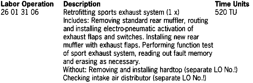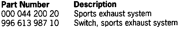 - Installation of a switch in the center console area which can be used to switch on or off the sports exhaust system to go between standard exhaust sound and sporty exhaust note. The deactivated state is indicated by the light-emitting diode lighting up in the switch.