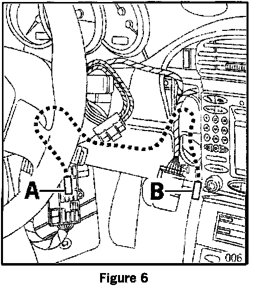 3.2 Route wiring harness from relay carrier (A) over the steering column to the installation opening in the switch cover (B) and affix.