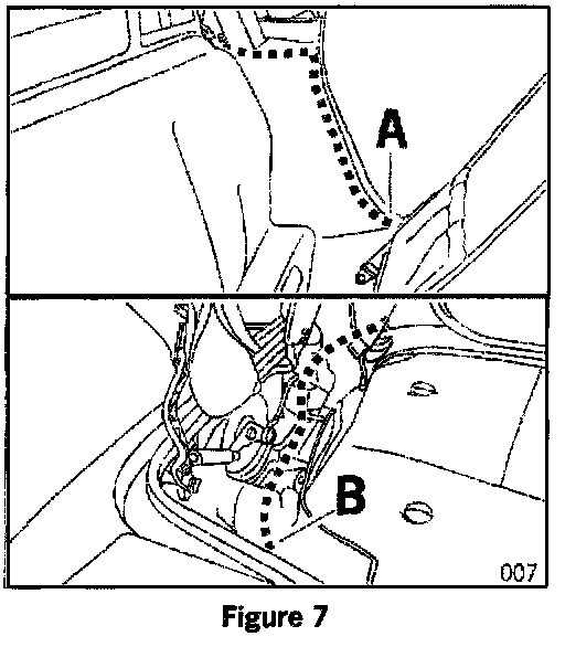 7.2 Connect fastening clip (A) for the Tekalan lines on the right and left transmission holder.