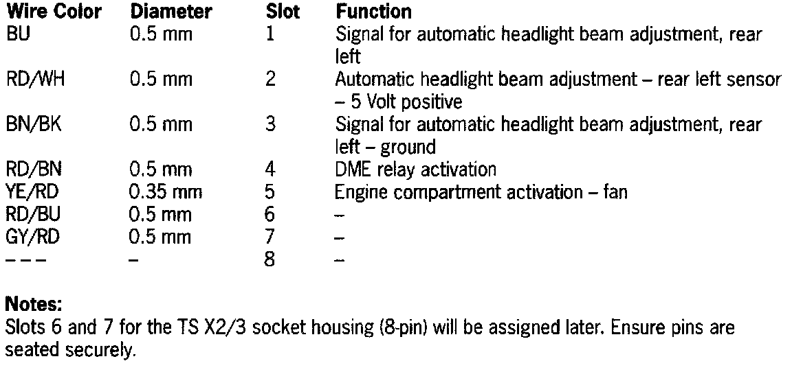 5.6 Route pin housing and socket housing of TS X2/3 (8-pin) from retrofit kit as shown.