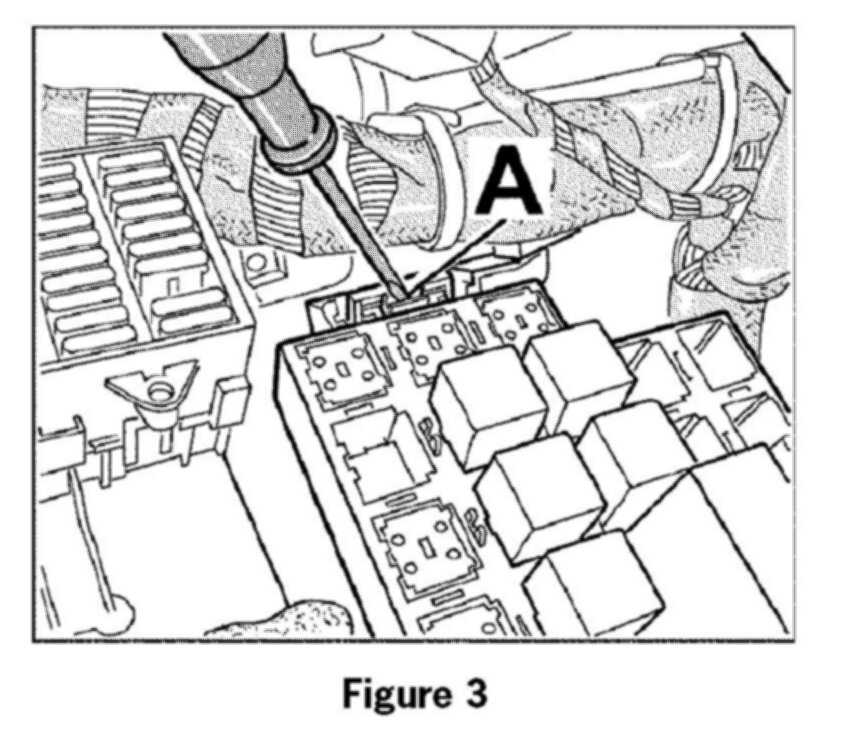 11. Press out plug contact (Figure 7, Item A) of chamber 3 (terminal 30) of relay socket No.9 out of the relay socket using press-out tool.