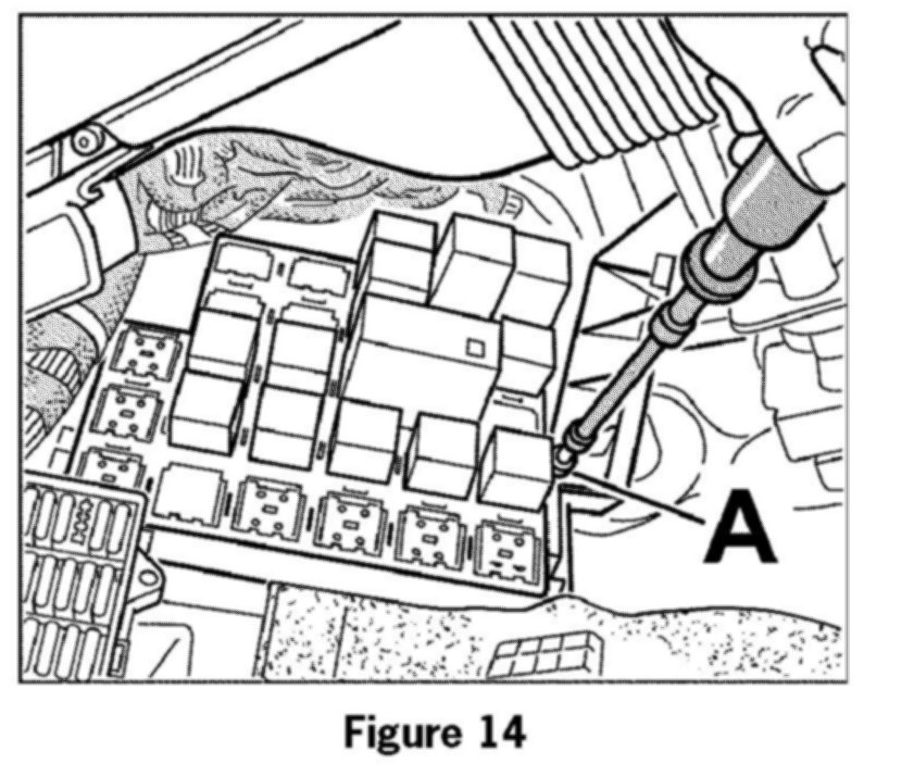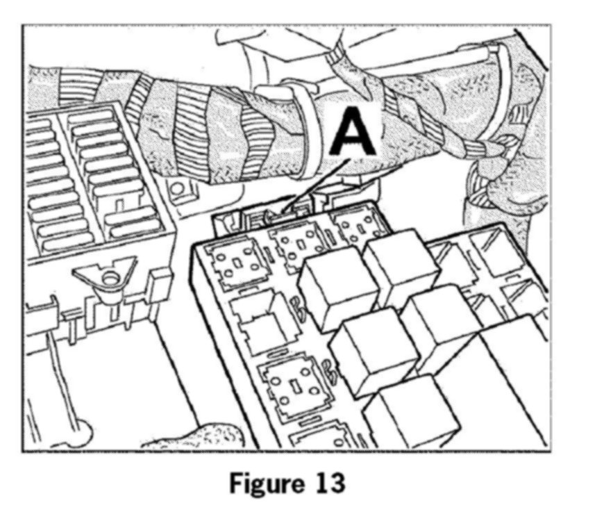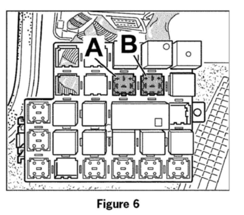 10. Uncover relay socket No. 9 (Figure 6, Item B) from the wiring harness of relay carrier. fig 6