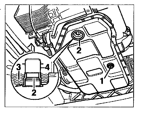 - The stipulated fluid level -3- is extremely important for perfect functioning of the automatic transmission. It is correct if there is a slight amount of ATF escaping at the filler screw bore -2- at temperatures between 30 degrees C and 40 degrees C.