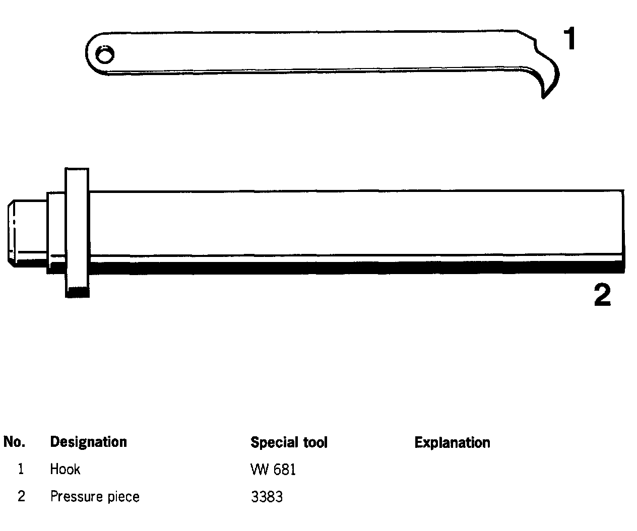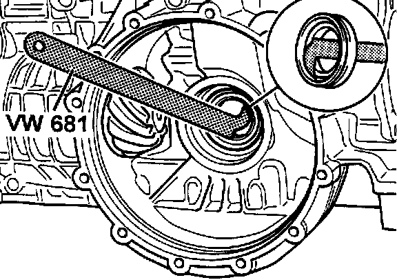 Note Special tool VW 681 must be applied behind the two sealing lips of the sealing ring. Do not apply to the circumference of the sealing ring, since otherwise the contact area in the transmission housing will be damaged. While levering it out, guide lever carefully.