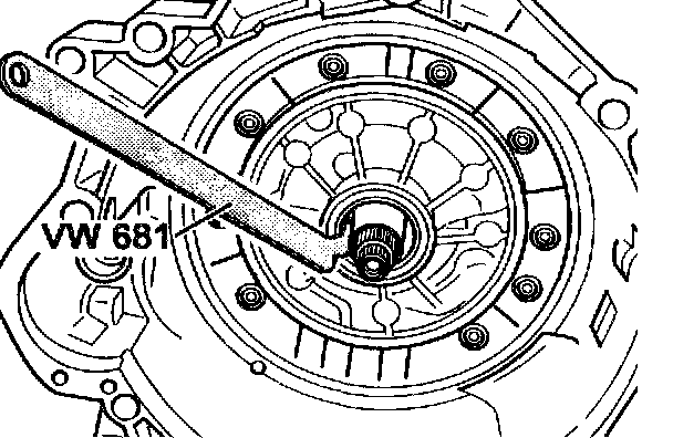 2. Remove sealing ring with special tool VW 681. Place the special tool directly behind the sealing lip of the sealing ring so that the mounting face ring is not damaged.