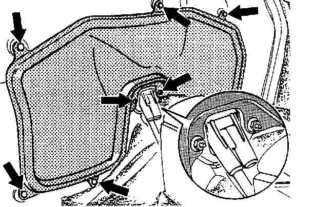 8. Press out locking piece and remove selector lever cable. Take care not to soil the passenger compartment.