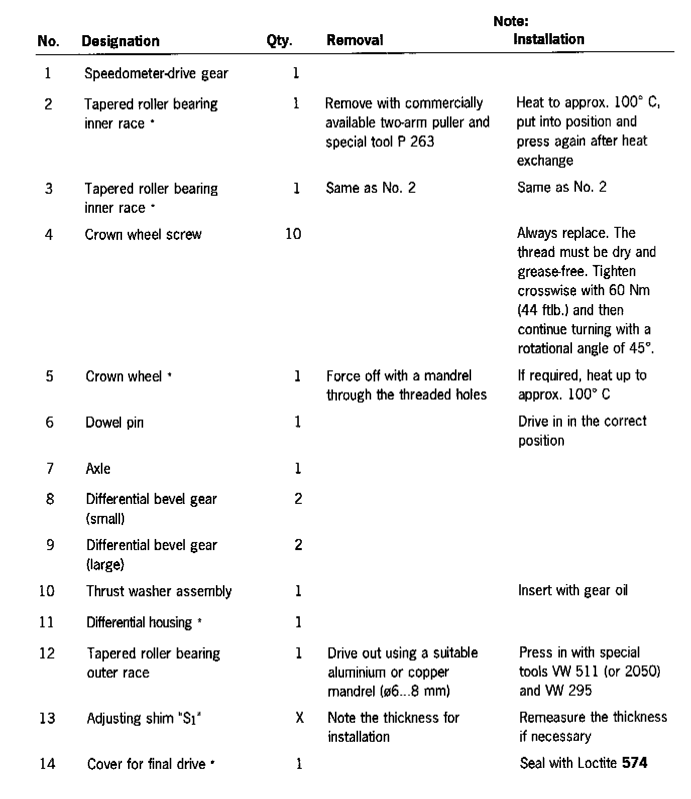 1. Force the crown wheel off the housing.
