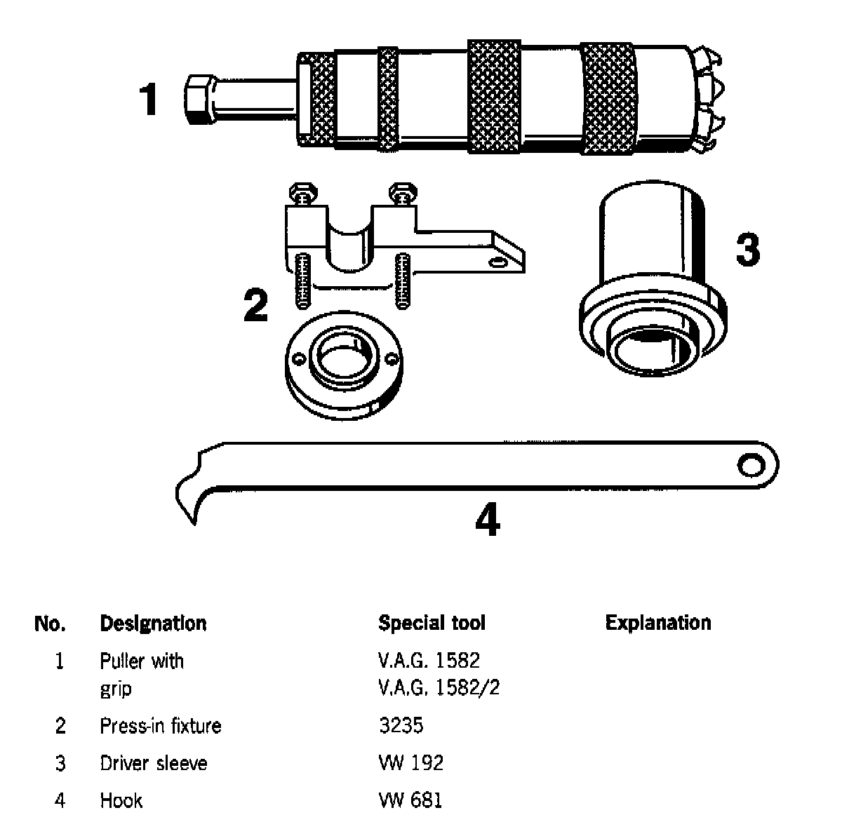 3. Pull the ball bearing for the input shaft out of the transmission housing using the special tools V.A.G. 1582 and V.A.G. 1582/2.
