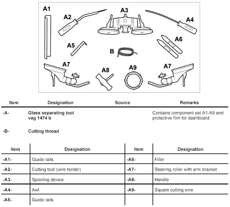 - The following instructions describe the general procedure for removing car windows with the glass separating tool VAG 1474 B.