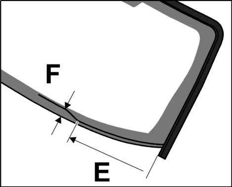 3.1. Before applying the adhesive material, mark the course of the adhesive bead in accordance with the dimensions -E- = 160 mm, -F- = 30 mm on the left and right on the lower edge of the windscreen.