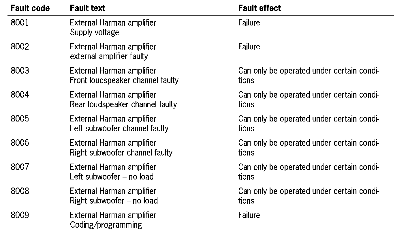 Fault overview - external Harman amplifier
