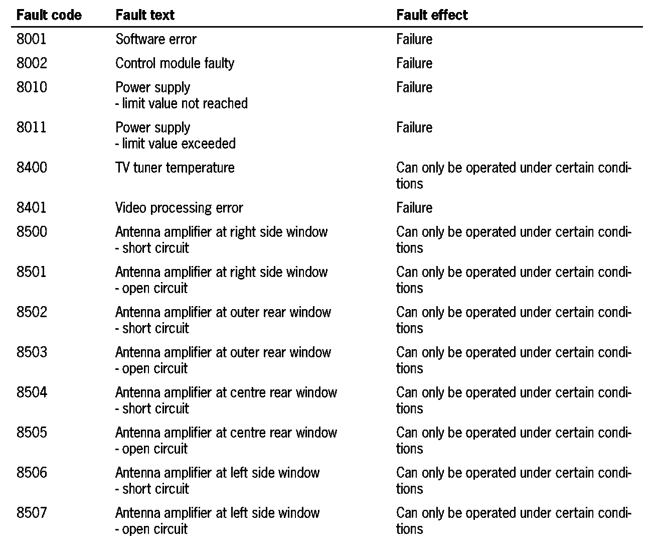 Fault Overview - TV Tuner: