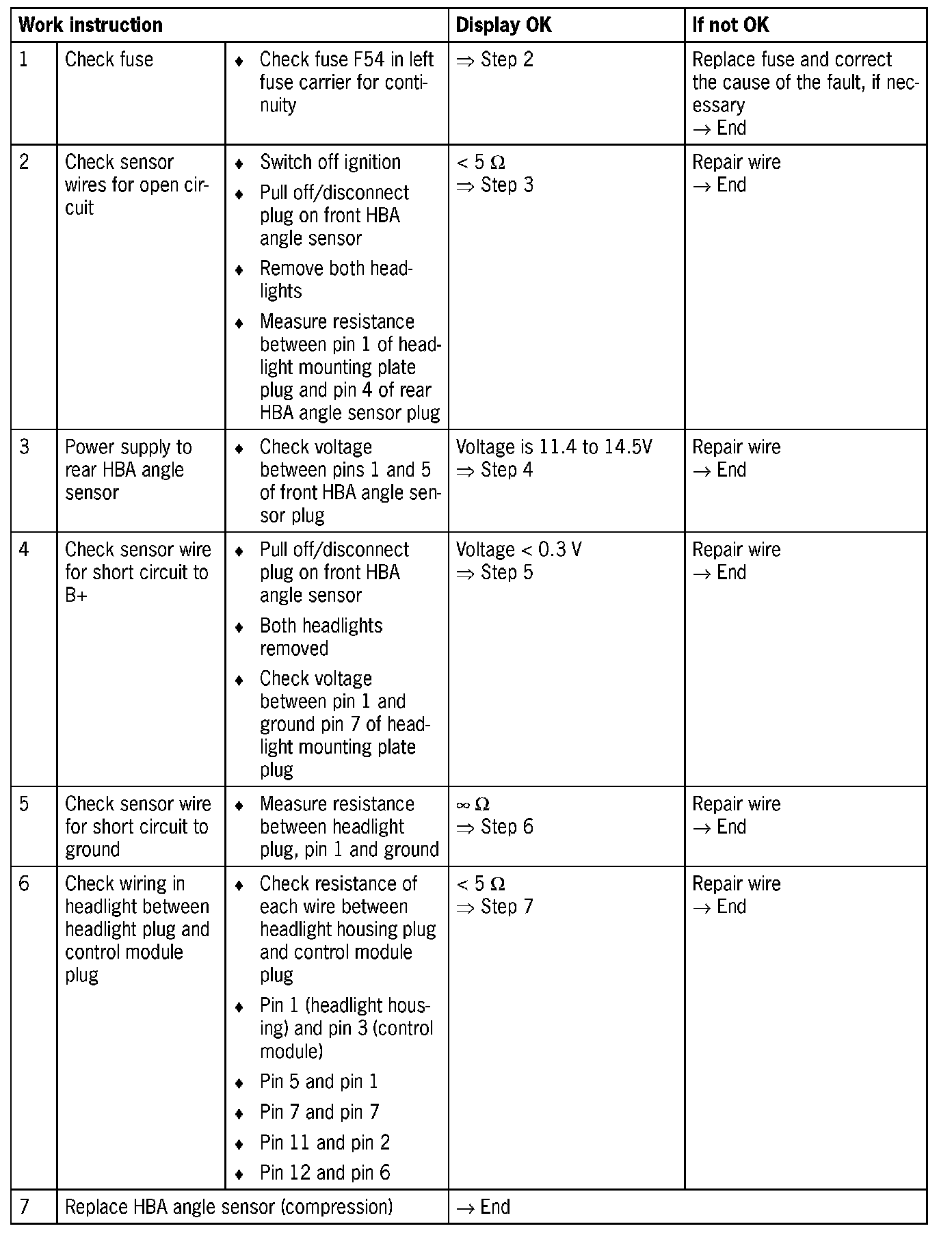 - Signal lead to HBA angle sensor (front compression) faulty