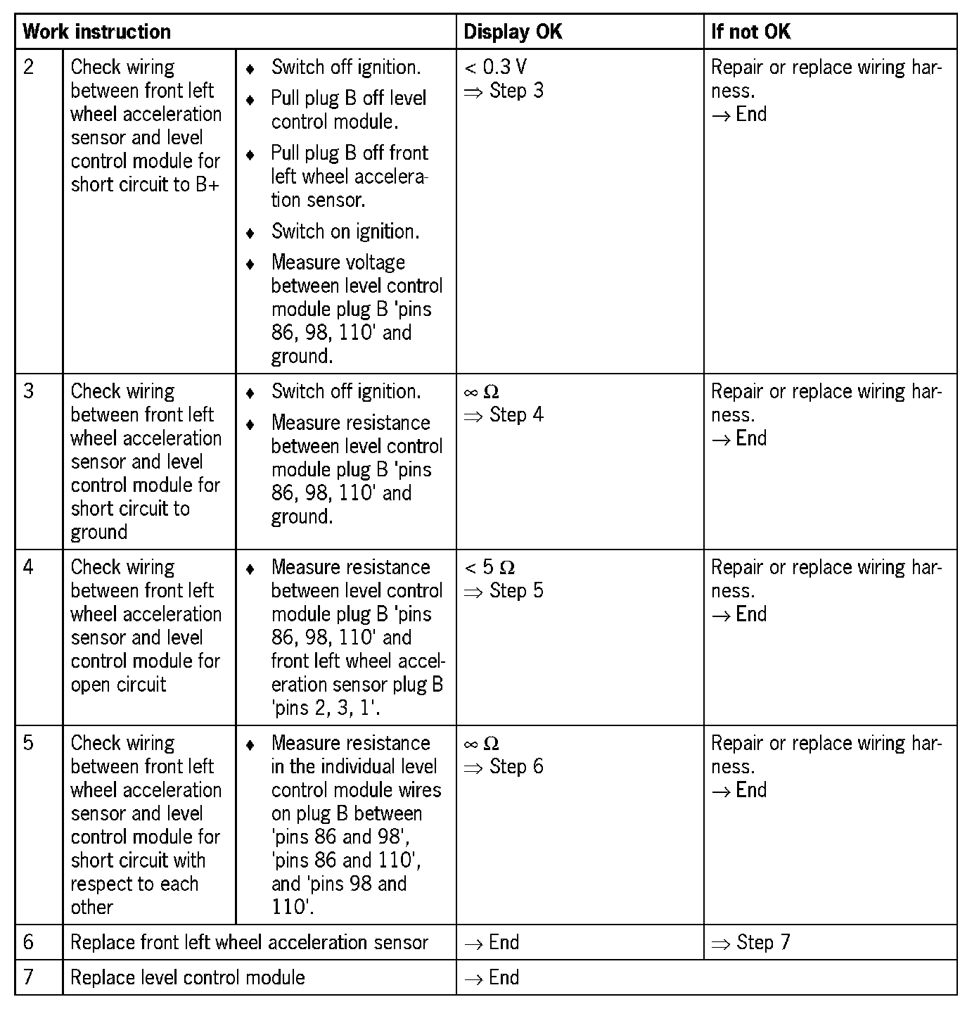 - Level control module receives implausible signal from wheel acceleration sensor