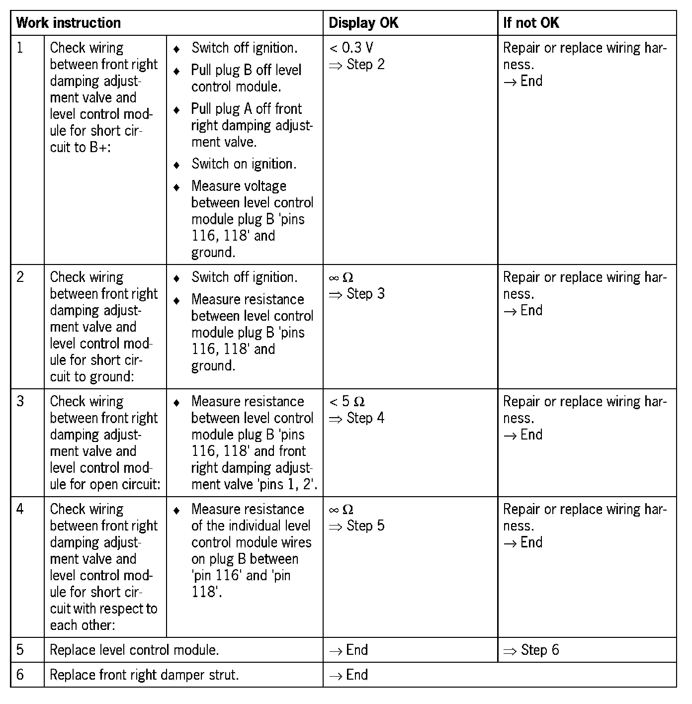 - Short circuit to B+ or open circuit in the wiring of pin 118 of the level control module (electrical fault in electric circuit)