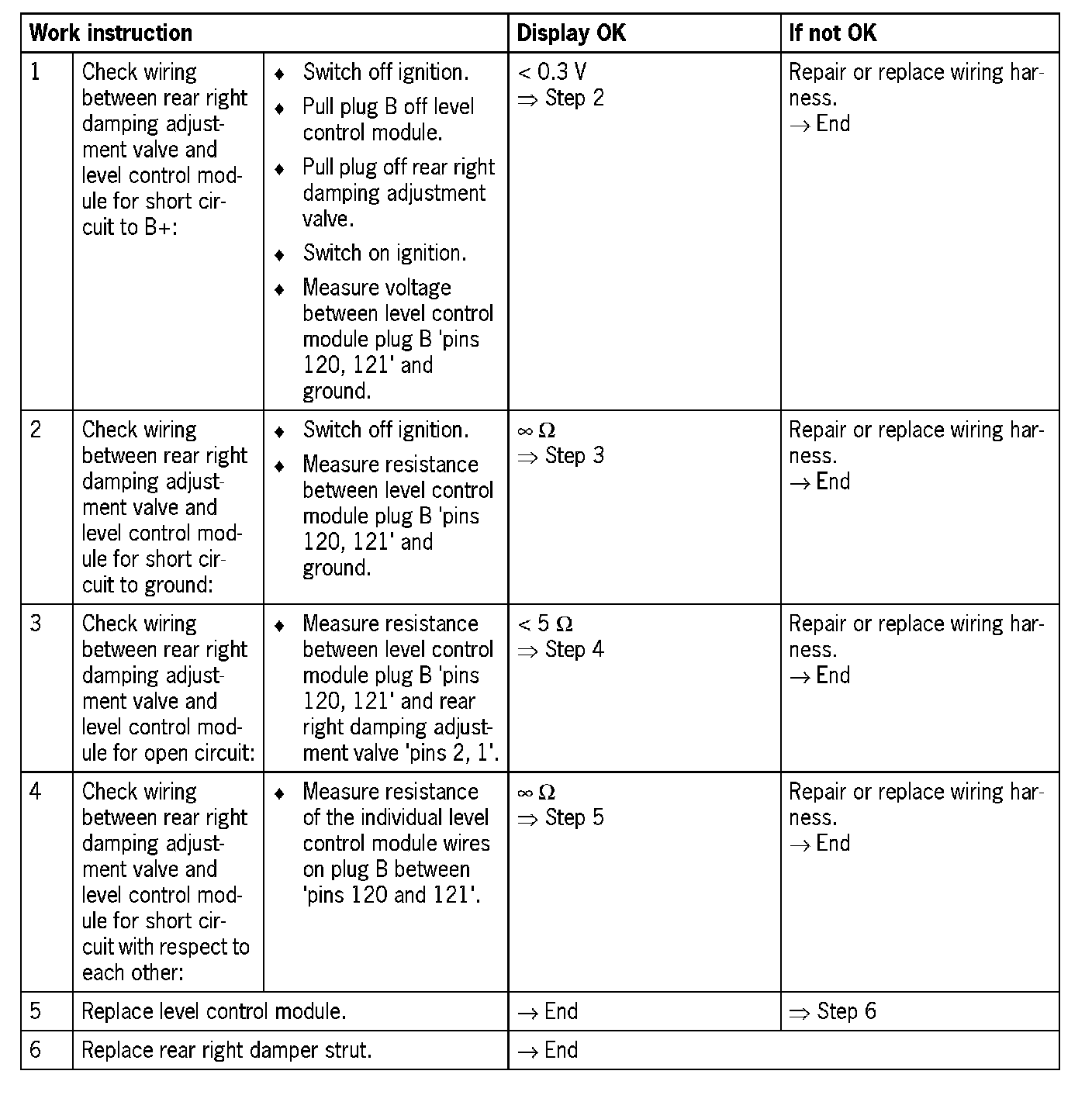 - Short circuit to B+ or open circuit in the wiring of pin 120 of the level control module (electrical fault in electric circuit)