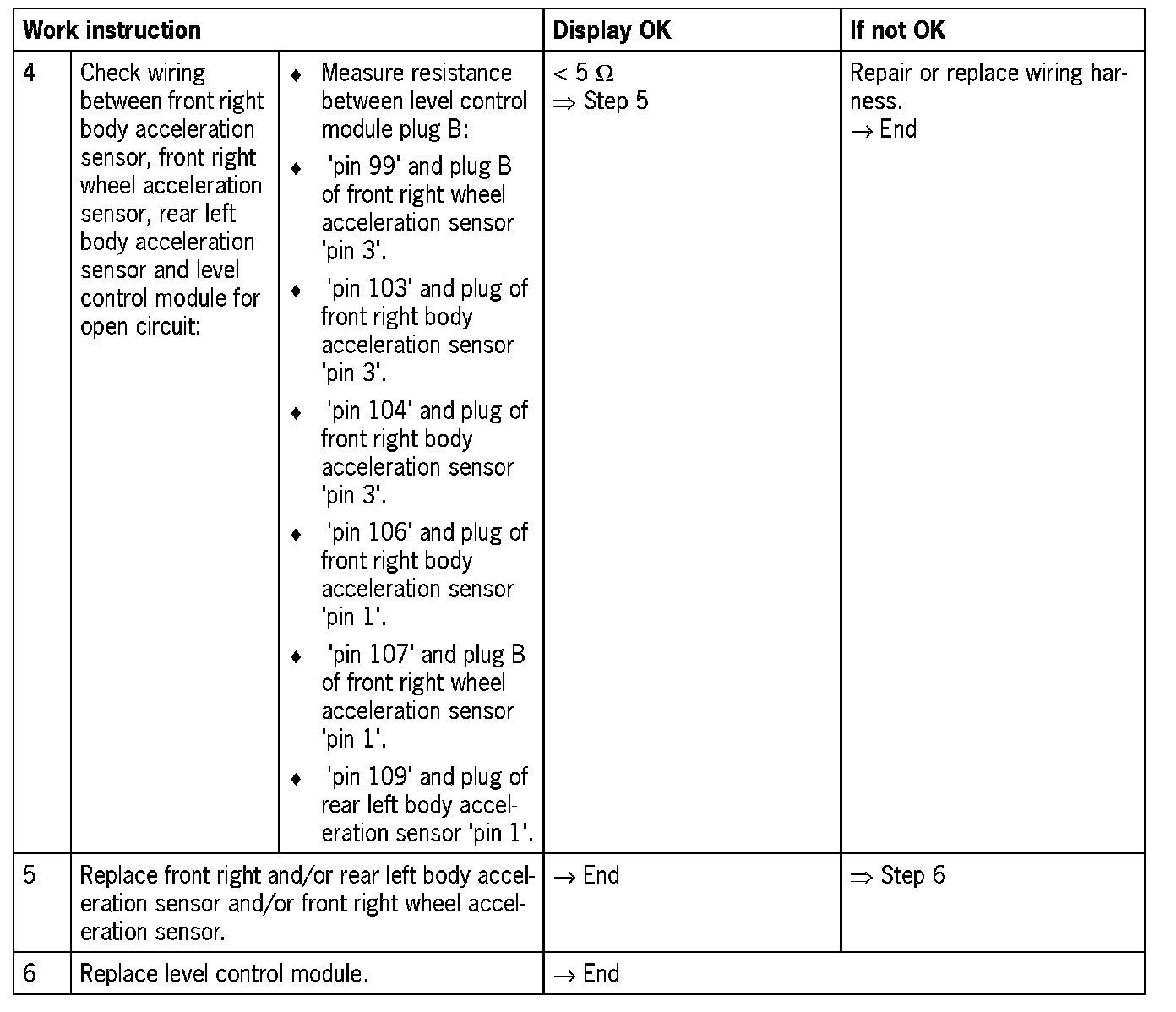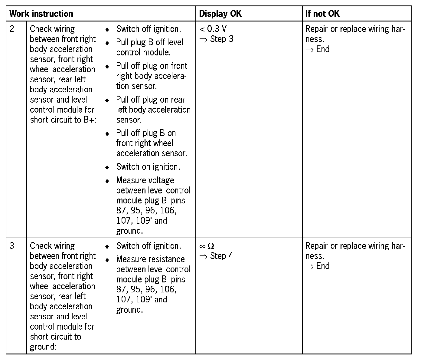 Fault code 0146Power supply for body and wheel acceleration sensor, front right/rear left