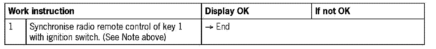 - Key 1 is not synchronised with the electronic ignition switch