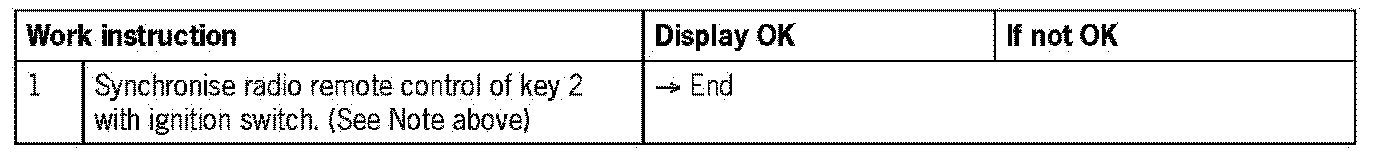 - Key 2 is not synchronised with the electronic ignition switch