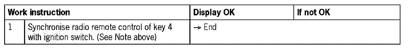 - Key 4 is not synchronised with the electronic ignition switch