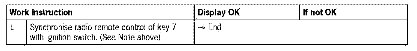 NOTE: To re-synchronise the radio remote control of key 7 with the electronic ignition switch, insert the key in the ignition switch and switch on terminal 15. Synchronisation is performed automatically in a matter of seconds.