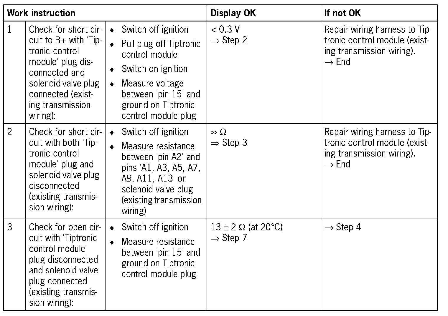 - Max. voltage drop on Tiptronic control module: 1.5 V
