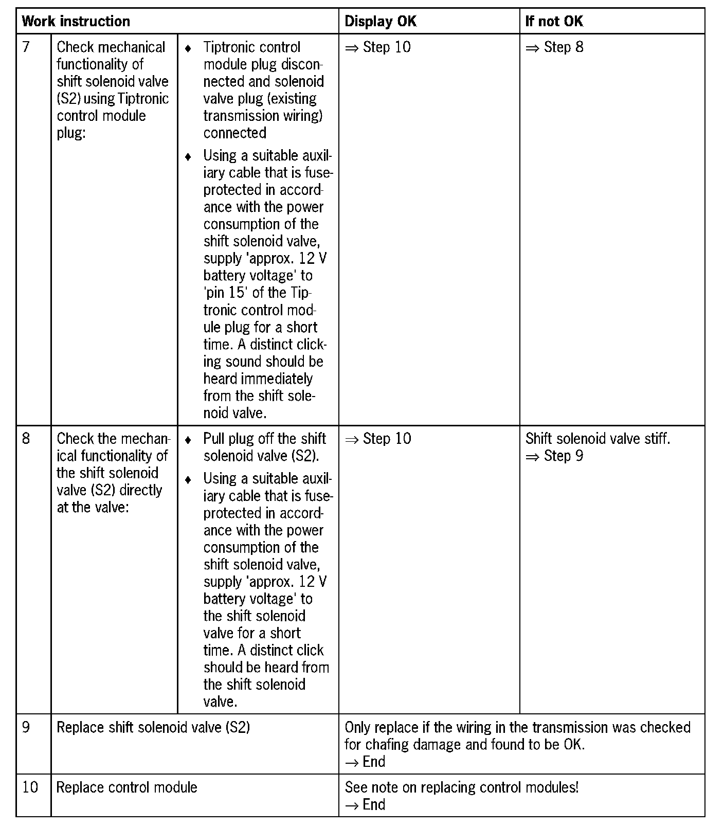 - 1. 'Open circuit/short circuit to B+': A short circuit to B+ causes the shift solenoid valve (S2) to be continually activated
