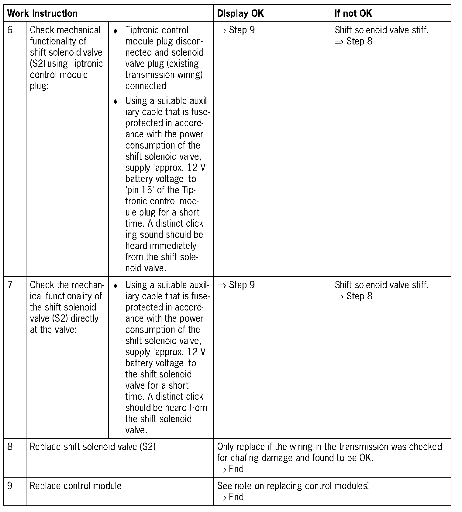 - 1. 'Open circuit/short circuit to B+': An open circuit prevents activation of the shift solenoid valve (S2)