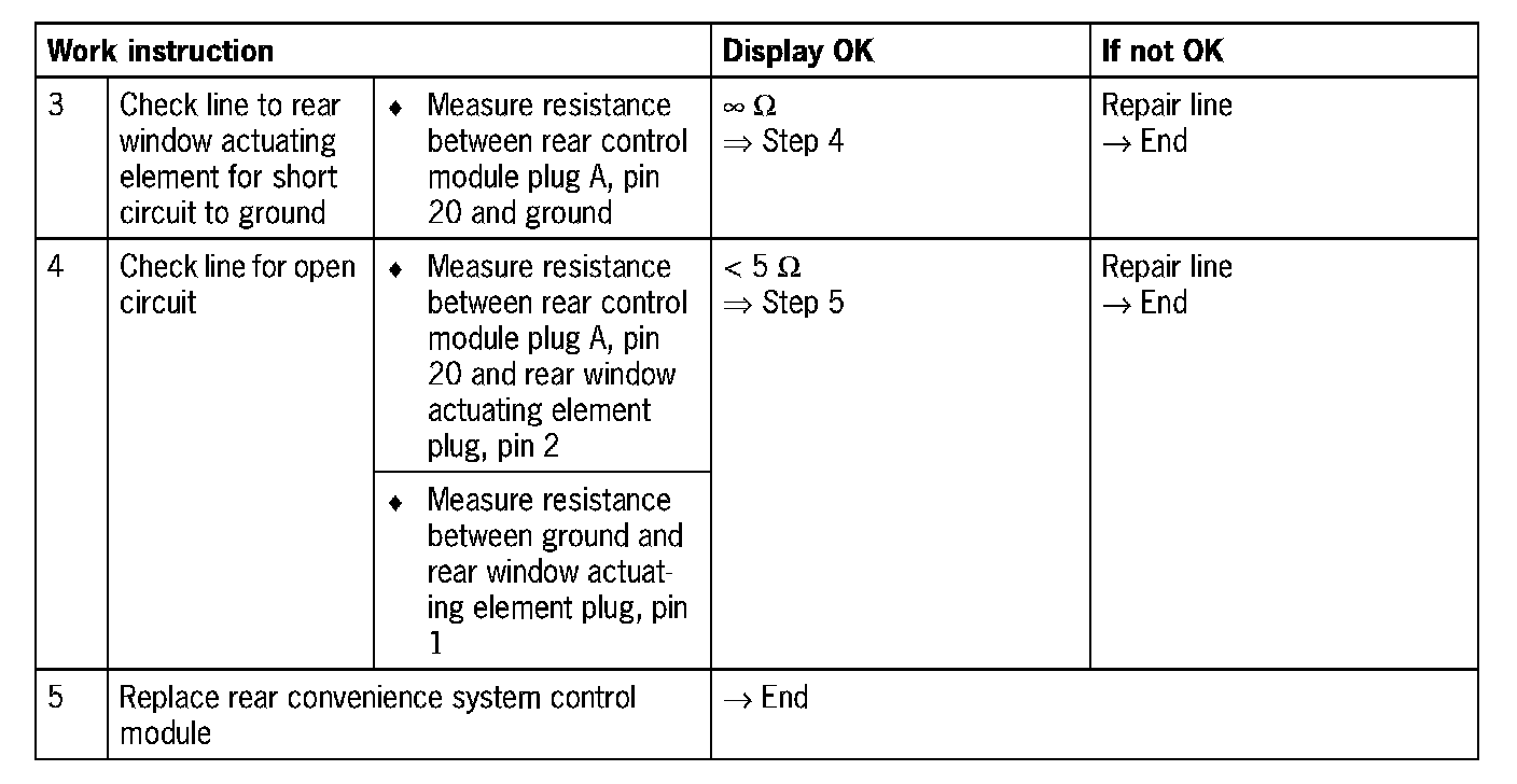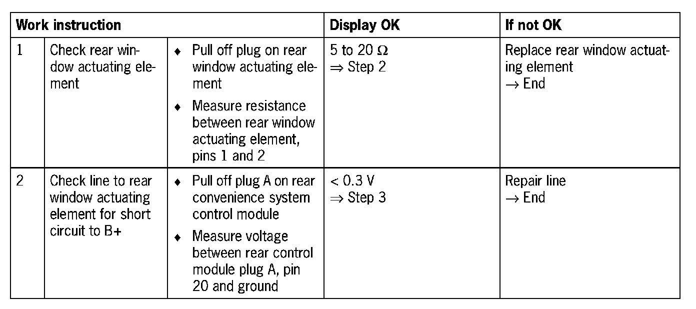 Fault code 0328Rear window actuating element